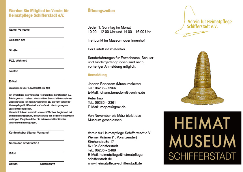 Laden Sie unseren Flyer herunter, um Mitglied im Verein für Heimatpflege Schifferstadt e.V. zu werden.