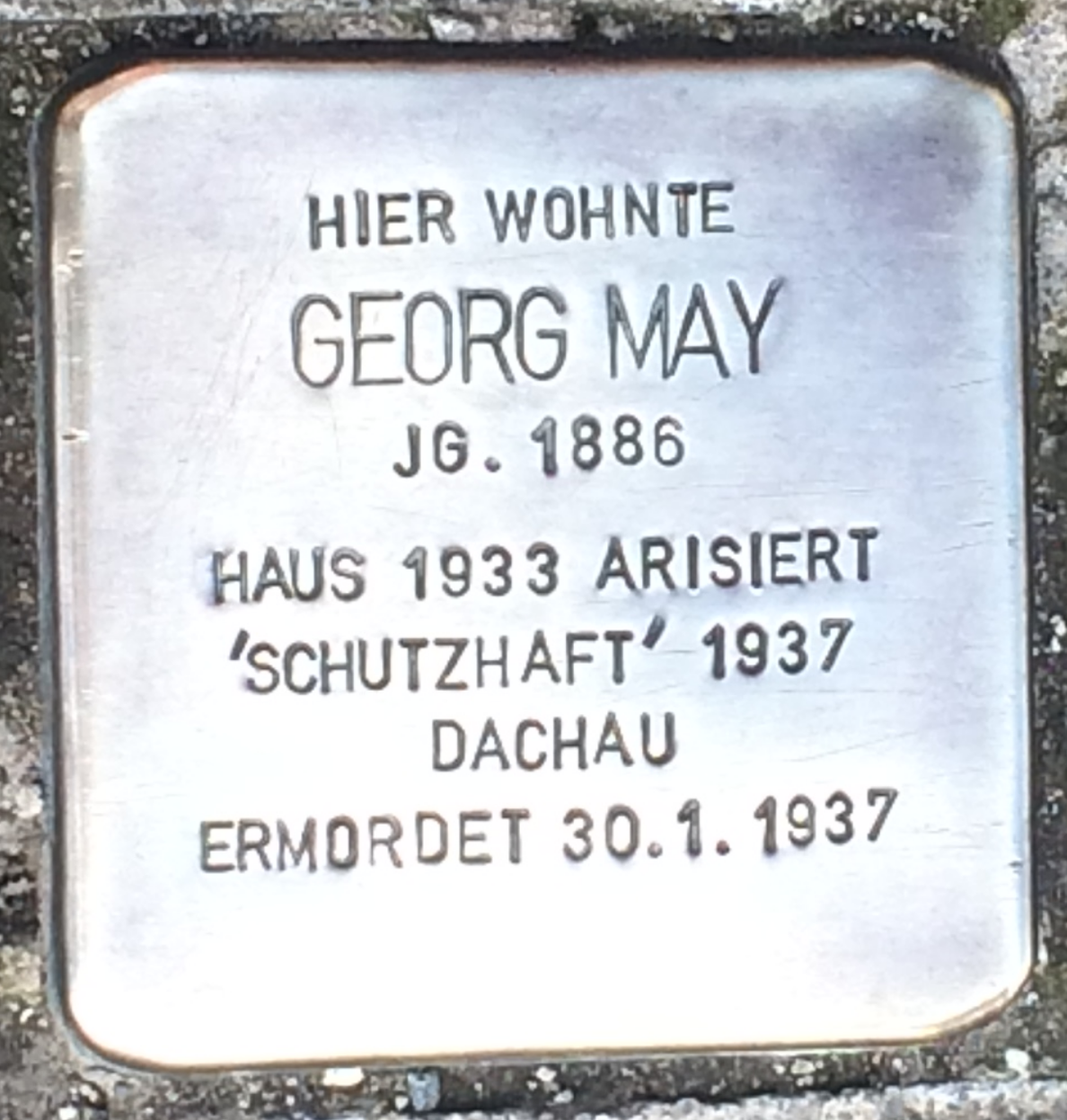 Trotz der Gefahr kehrte Georg May aus Heimweh nach Schifferstadt zurück. Im Mai 1936 wurde er wegen angeblichen Hochverrats verhaftet und kurz darauf, im Januar 1937, in das Konzentrationslager Dachau deportiert.